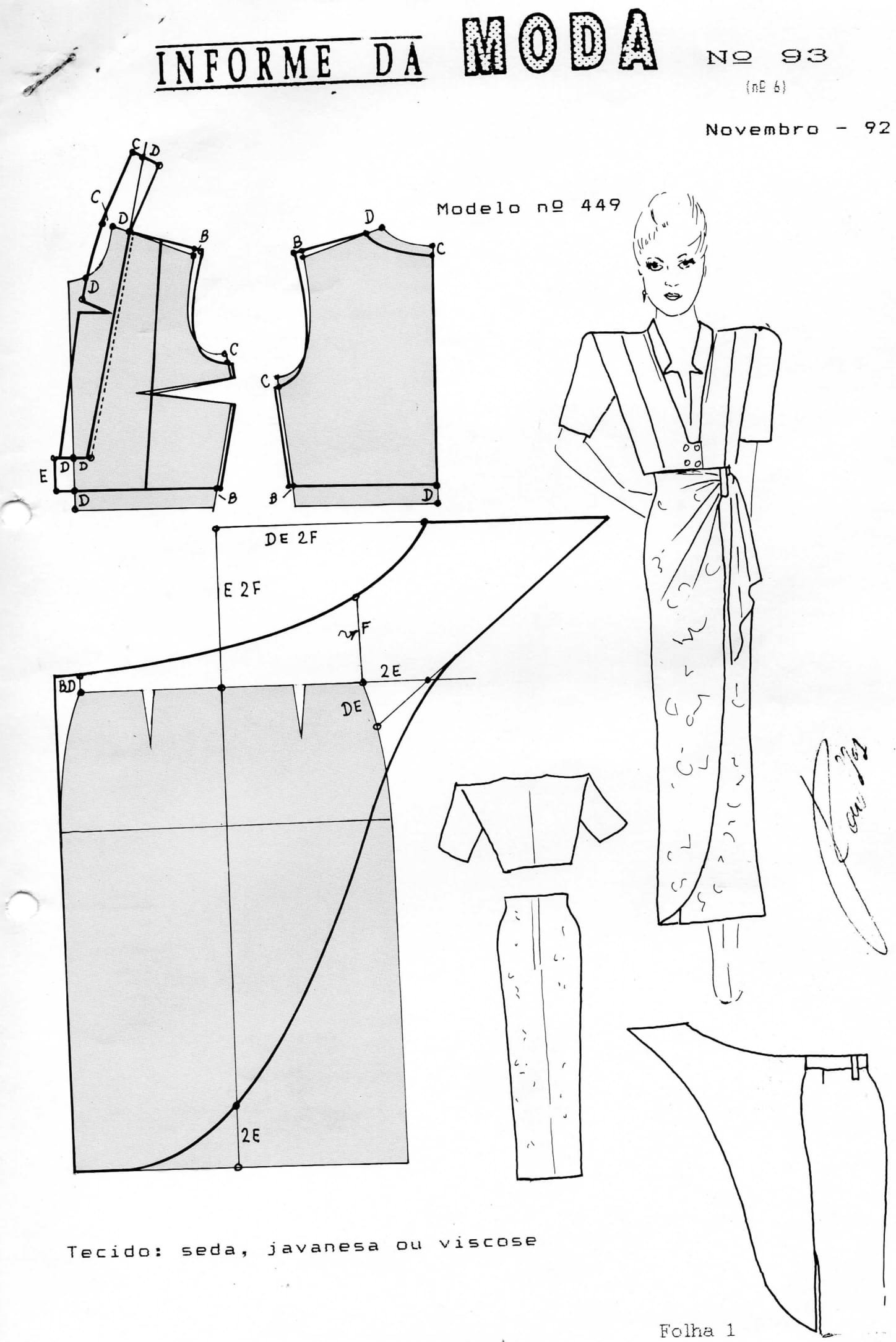 0449 Conjunto de blusa curta e saia assimétrica com trespasse