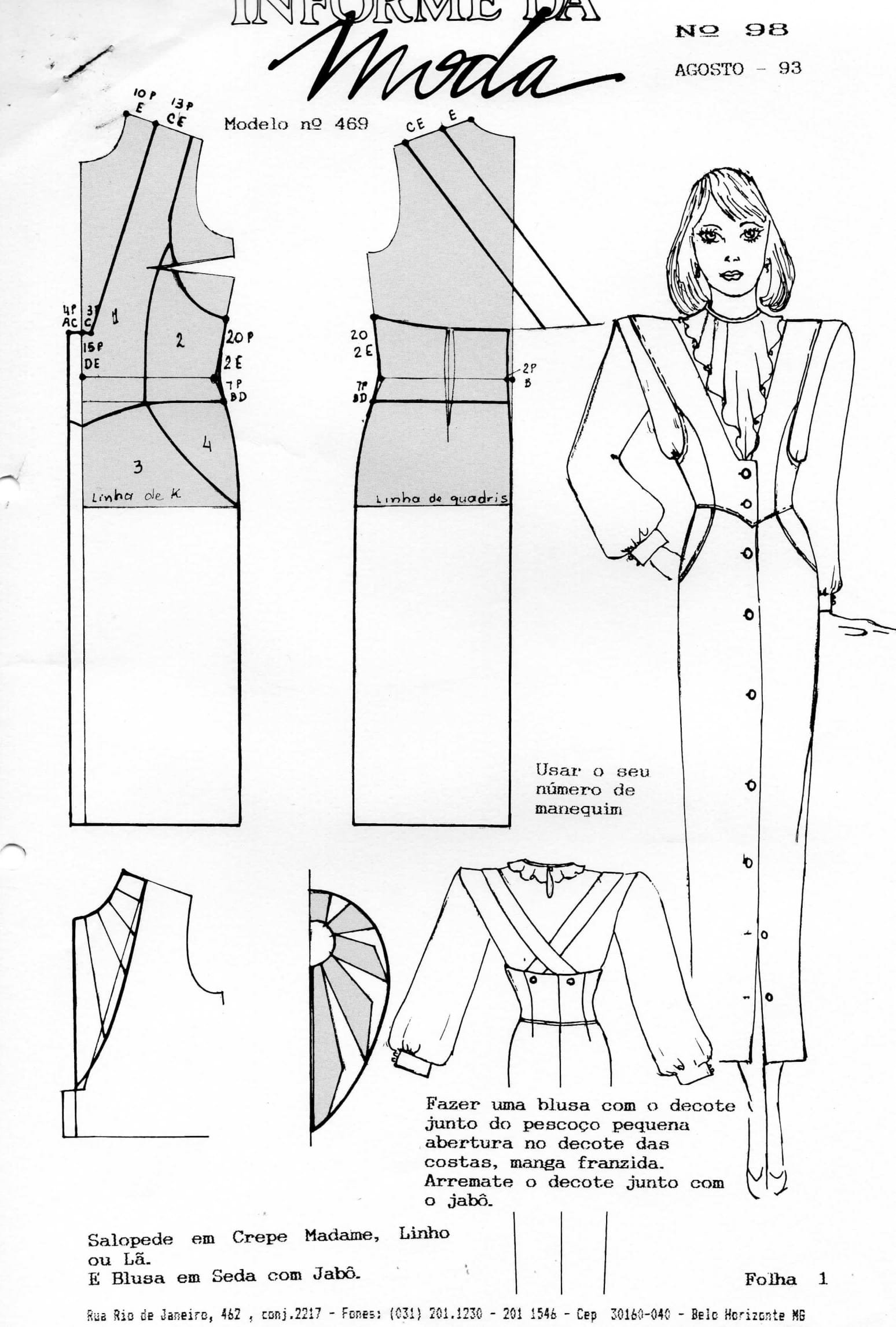 0469 Vestido com manga franzida e decote nas costas