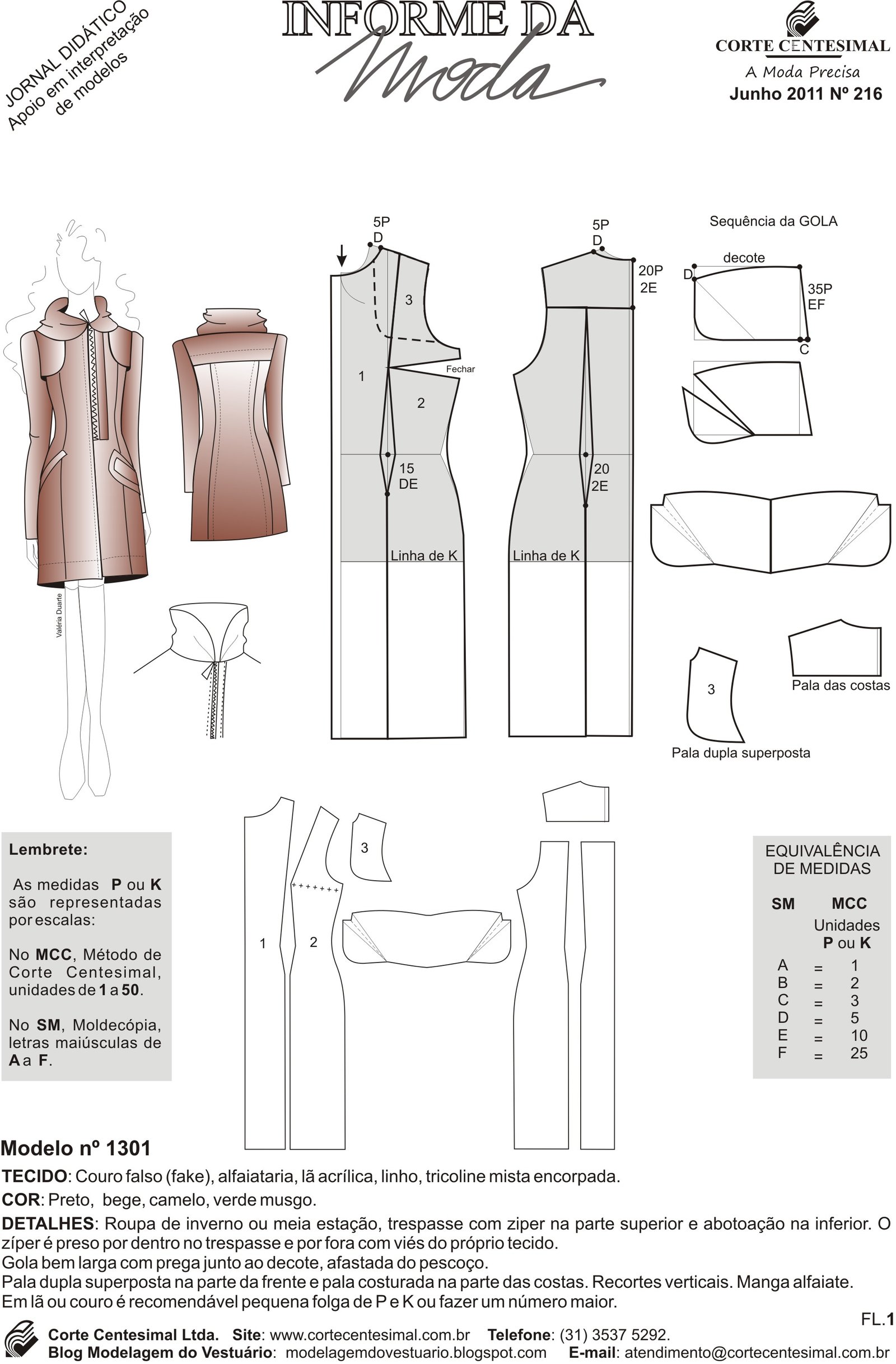 1301 Vestido de inverno ou meia estação, trespasse com zíper na parte superior e abotoação na inferior